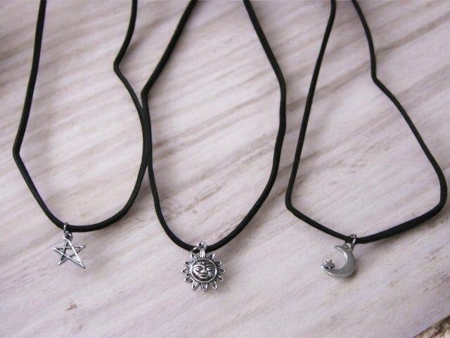 Set van 3 Choker Kettingen – Ster, Zon & Maan (Zilverkleurige Hangers)