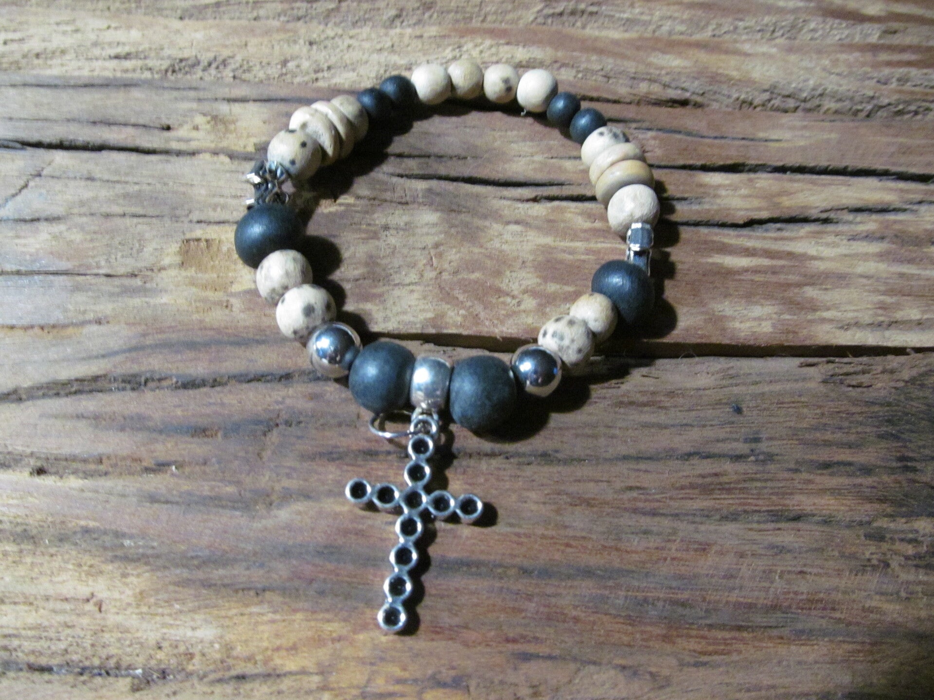 Armband met Natuursteen en Kruis bedel